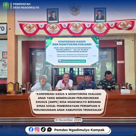 Jum'at, 14 November 2025, Dinas Sosial, Pemberdayaan Perempuan dan Perlindungan Anak (Dinsos P3A) Kabupaten Trenggalek bersama Pemerintah Desa Ngadimulyo melaksanakan Konferensi Kasus serta Monitoring dan Evaluasi penanganan Anak yang Memerlukan Perlindungan Khusus (AMPK).