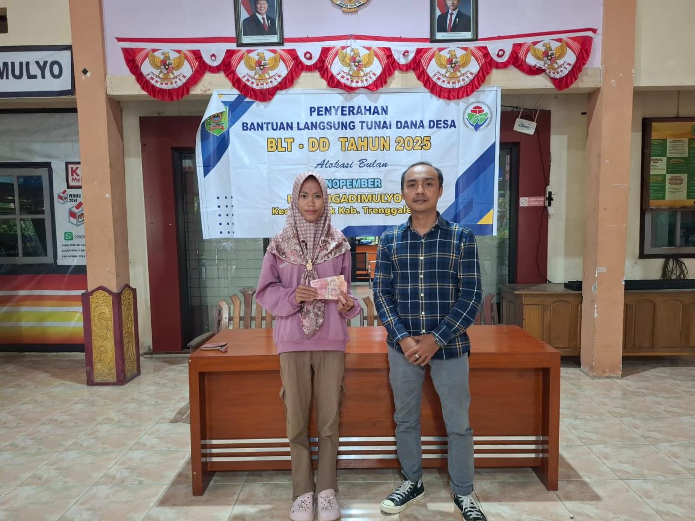 Pemerintah Desa Ngadimulyo menyalurkan BLT Dana Desa (DD) secara berkala kepada masyarakat miskin dan tidak mampu yang memenuhi kriteria, seperti kehilangan mata pencaharian atau memiliki anggota keluarga rentan sakit menahun. Jumat 21 November 2025 telah disalurkan untuk alokasi bulan November Tahun 2025 kepada 10 penerima, masing-masing menerima Rp 300.000. hadir dalam giat tersebut Kepala desa ngadimulyo beserta perangkat desa, BPD Desa Ngadimulyo, Penerima Manfaat, Camat Kampak, Pendamping Desa, Babinsa, Bktm Desa Ngadimulyo